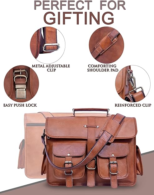 PREMIUM QUALITY: This leather Satchel for Men is Made of high quality. This Leather Crossbody Satchel Bag Has a Reinforced 15.6-inch Compartment for Everything You Need for School or College.